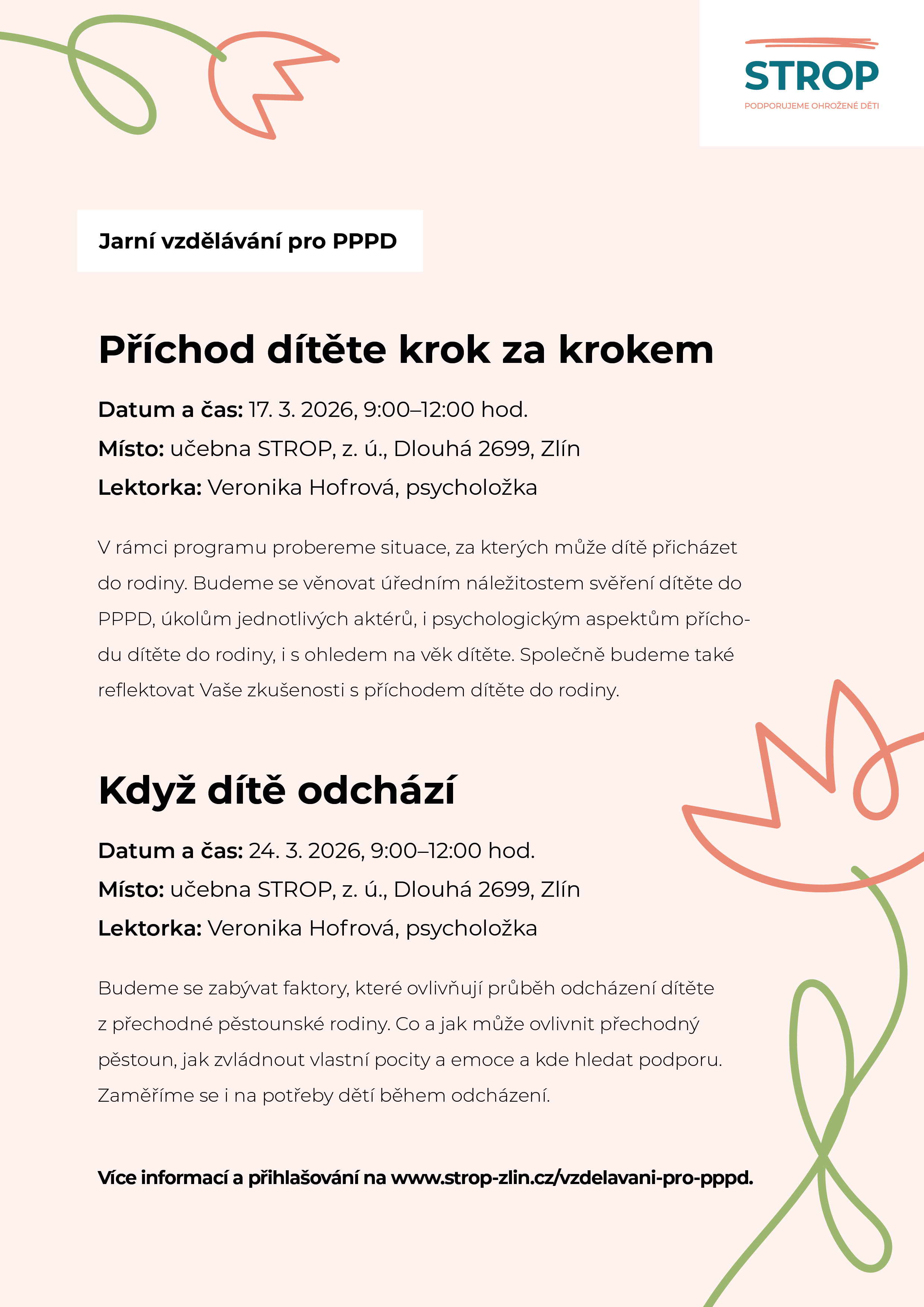 Přihlášení je možné do 5. března 2026. Podrobné informace a přihlašovací formulář najdete zde: www.strop-zlin.cz/vzdelavani-pro-pppd.