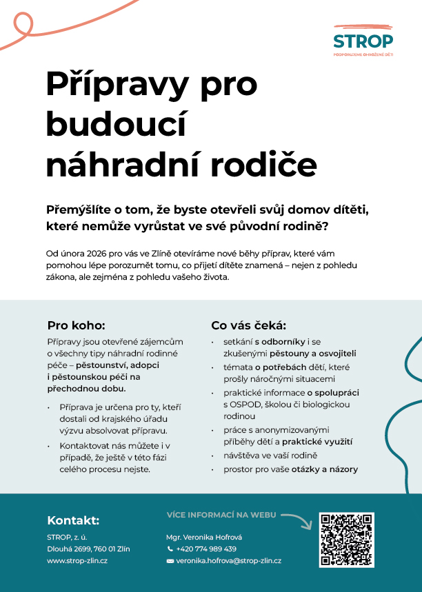 Přípravy jsou otevřené zájemcům o všechny tipy náhradní rodinné péče – pěstounství, adopci i pěstounskou péči na přechodnou dobu.